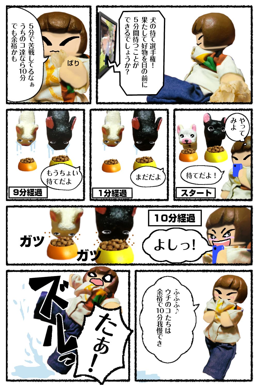動物番組で好物を前に5分間ちゃんと待てができるか、というコーナーをみて、うちのブヒ達はもっと出来る!